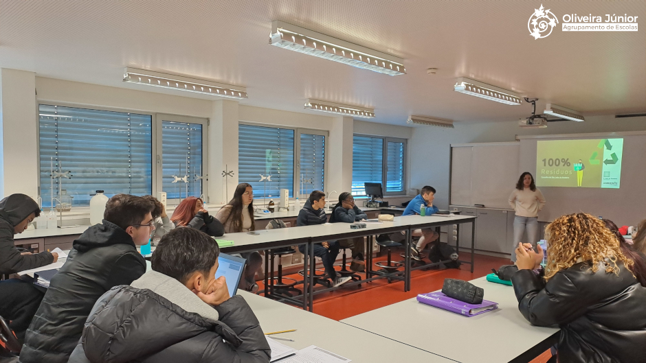 No dia 20 de novembro assistiram a uma sessão de esclarecimento acerca da reciclagem e separação correta de resíduos. – 100% Resíduos.