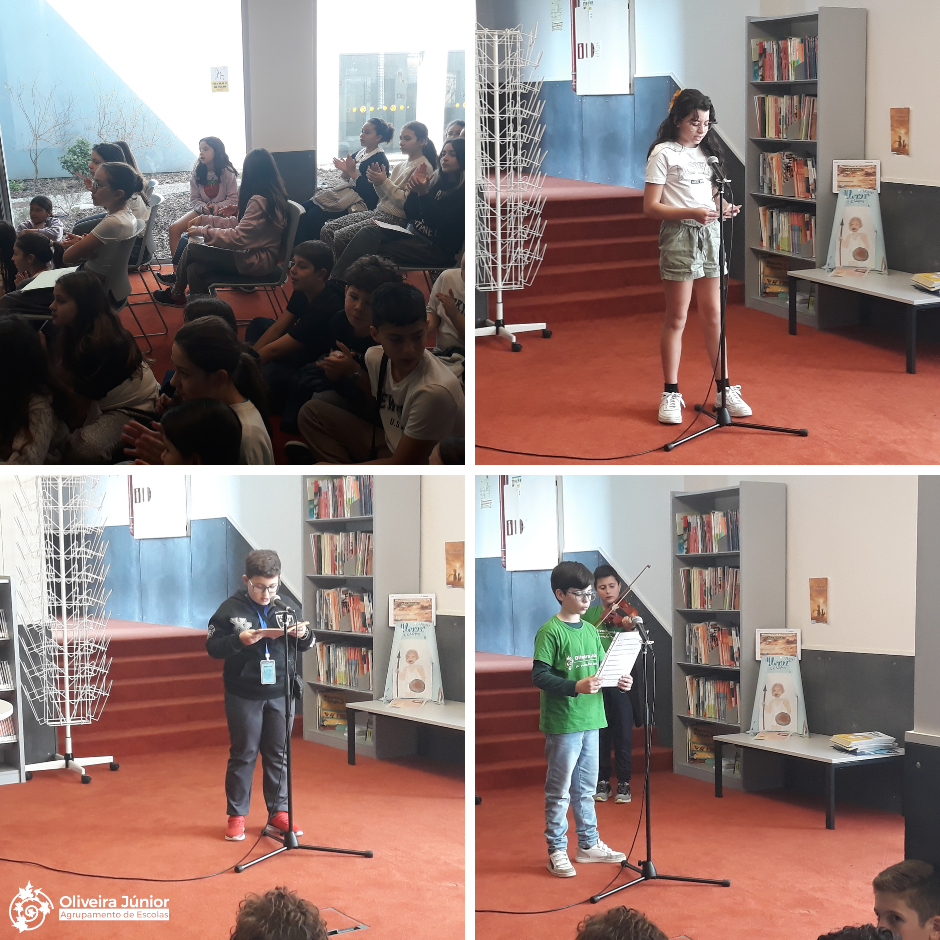 Os nossos “Voluntários da Leitura” foram autênticos artistas, levando poesia à Sala de Professores e à Rádio Escolar. Ouvimos versos poderosos em vários idiomas, incluindo poemas originais criados pelos nossos próprios alunos para o concurso “Poesia na Corda”! E o espetáculo na biblioteca para o 2.º Ciclo? Uma mistura mágica de poesia e música tocada ao vivo!