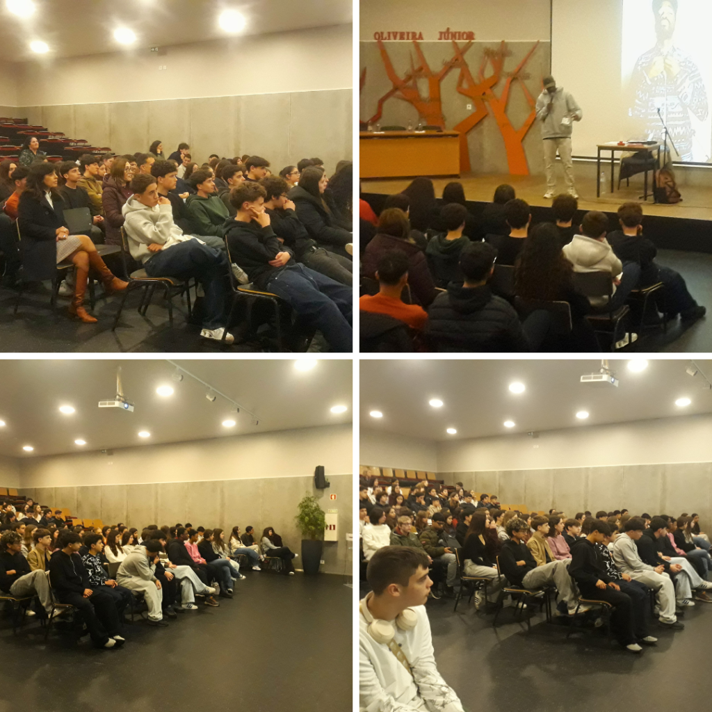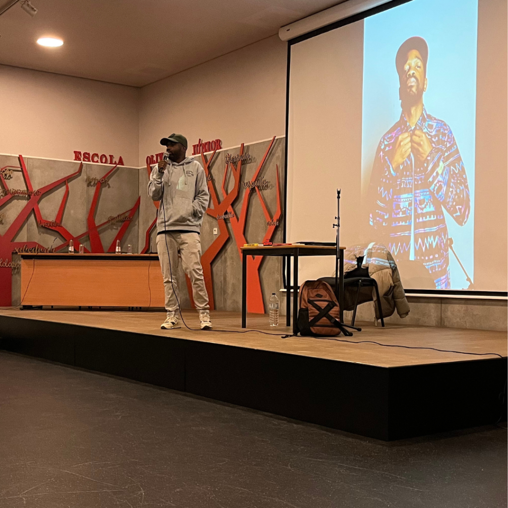 Esta iniciativa proporcionou aos nossos alunos um contacto direto com uma forma contemporânea de poesia: o hip-hop. Ao longo da sessão, Sir Scratch destacou a importância da escrita como meio de expressão pessoal e social. Falou também sobre o processo criativo por trás das suas músicas, mostrando como as palavras podem ganhar ritmo, emoção e impacto.