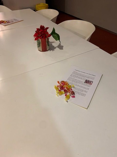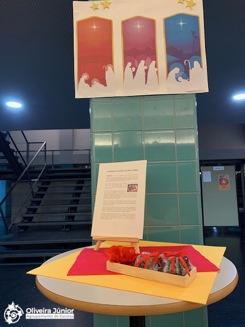 Exposición y decoración de la entrada del cole, notas informativas culturales, juegos y sopas de letras en el comedor y caramelos para todos: alumnos, funcionarios del insti y compañeros de trabajo.