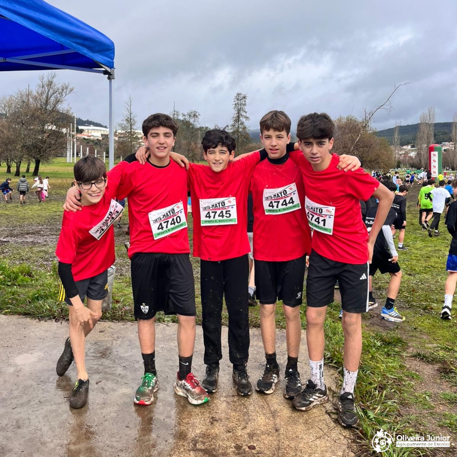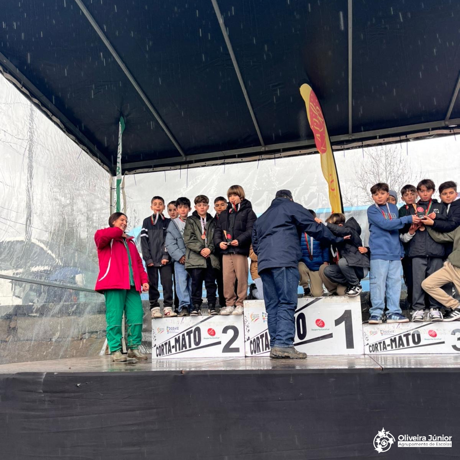 O Agrupamento de Escolas Oliveira Júnior marcou presença com 33 alunos, acompanhados por 3 professores, que enfrentaram condições climatéricas bastante adversas. A chuva persistente transformou o percurso num terreno muito lamacento, exigindo dos participantes um elevado nível de resistência, superação e determinação.