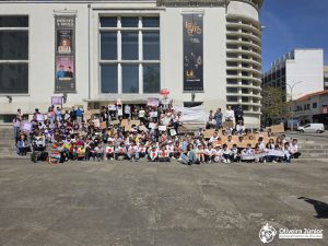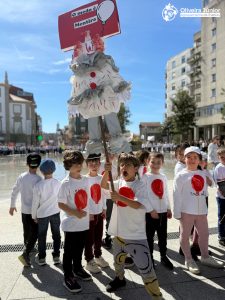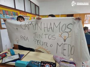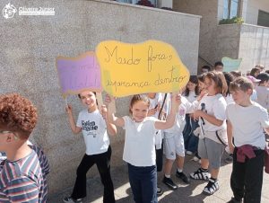 A temática foi trabalhada em sala de aula e os alunos saíram à rua, num encontro de escolas, com cartazes, poemas e canções.