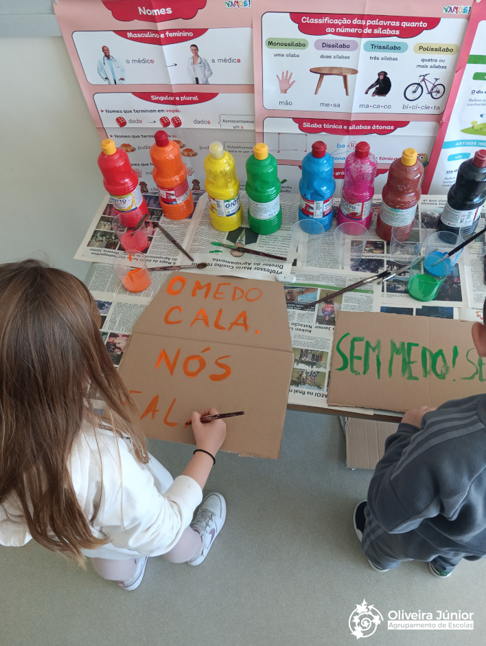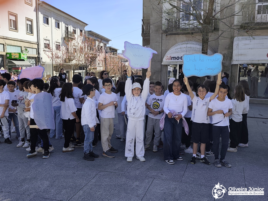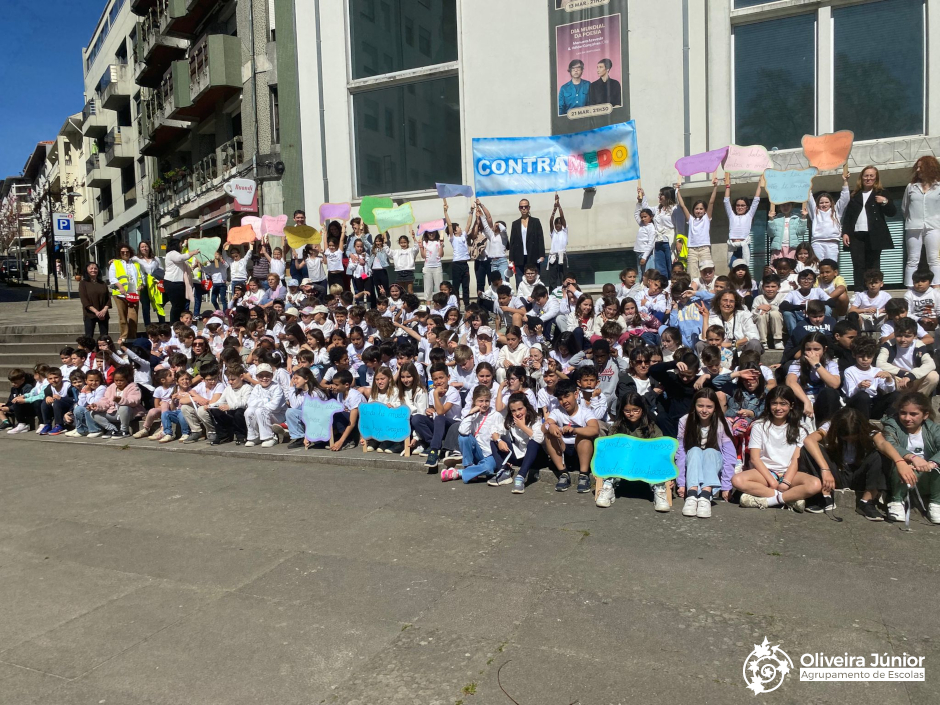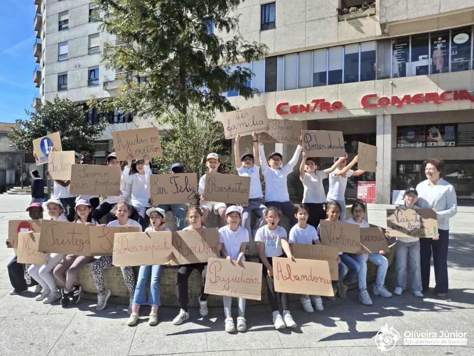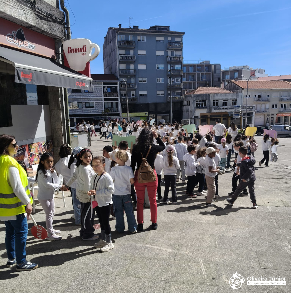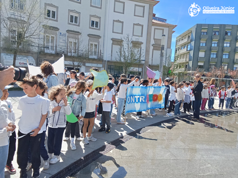 A temática foi trabalhada em sala de aula e os alunos saíram à rua, num encontro de escolas, com cartazes, poemas e canções.