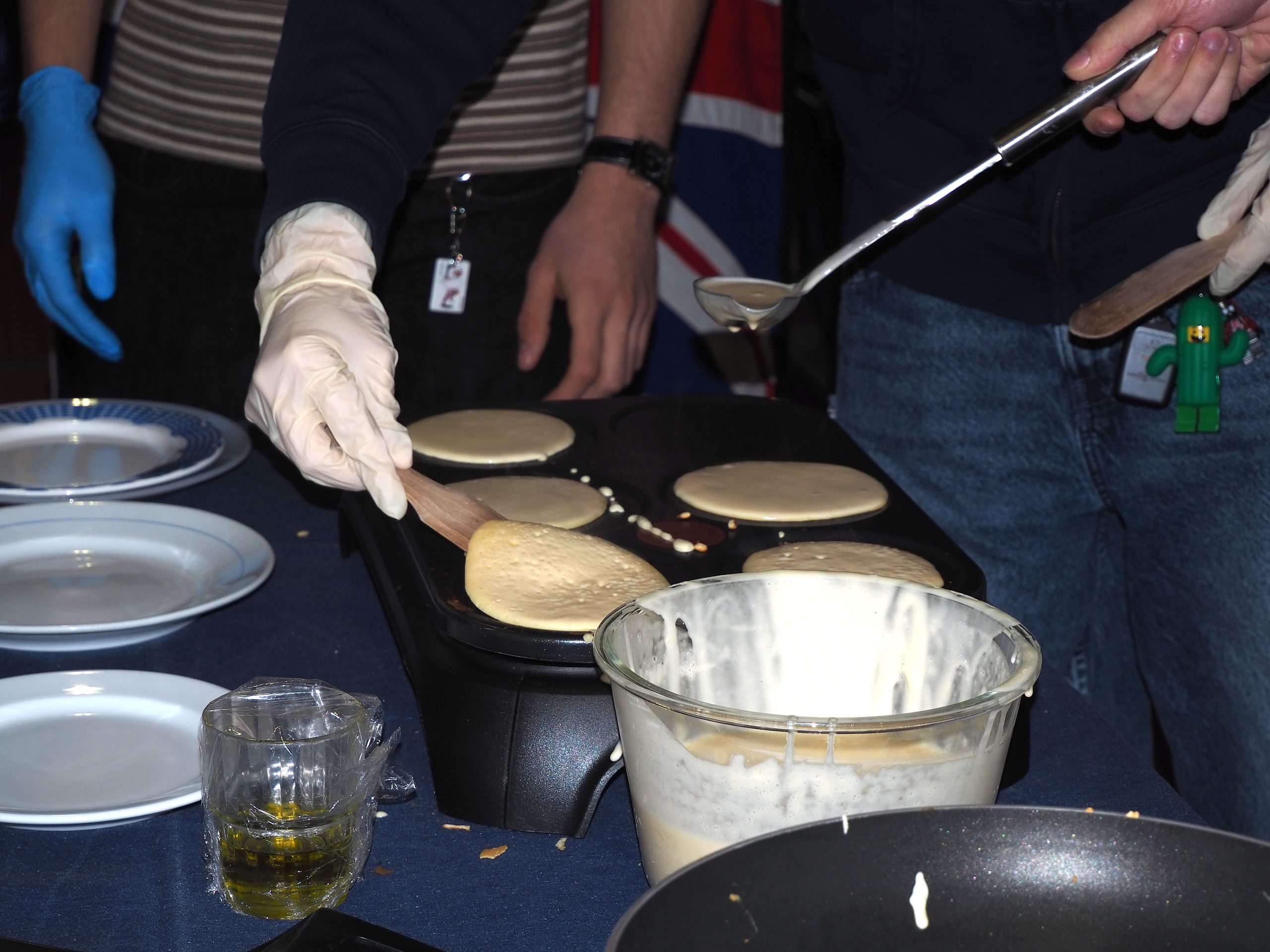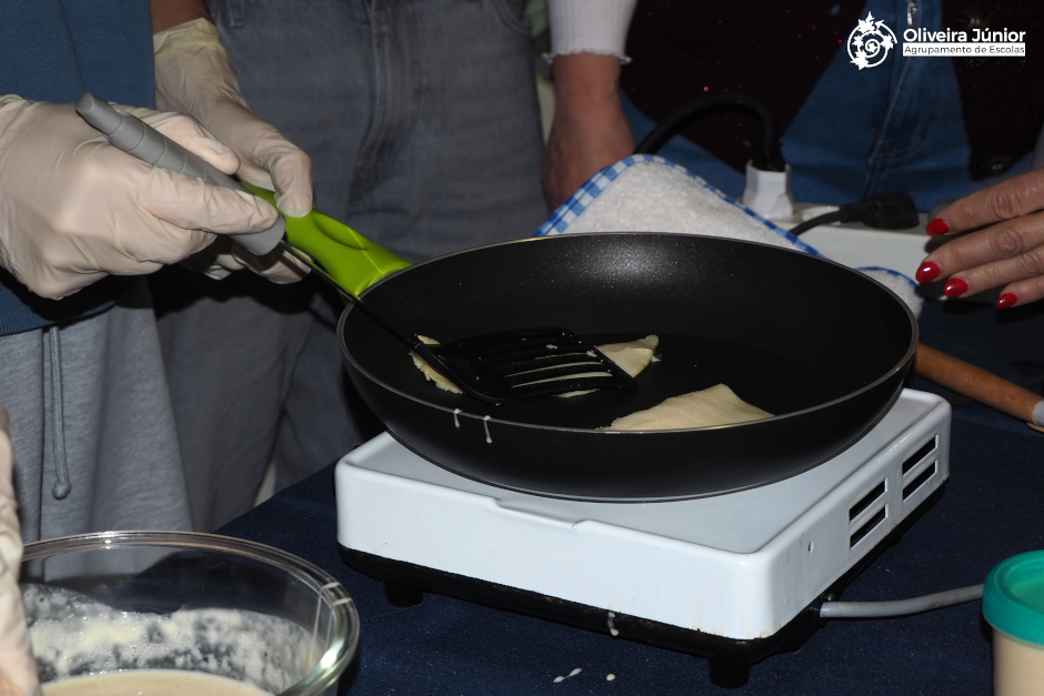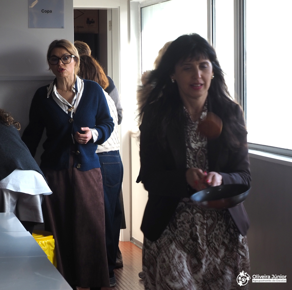 Foram feitas e saboreadas panquecas e os professores atreveram-se e divertiram-se numa competição, “Pancake Flip Race”, correndo e virando a sua panqueca numa sertã.