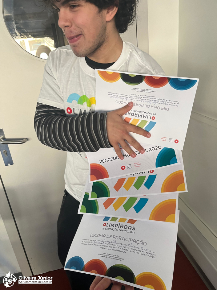 O Agrupamento de Escolas Oliveira Júnior foi distinguido como Vencedor Municipal 2025/2026 das Olimpíadas de Educação Financeira!