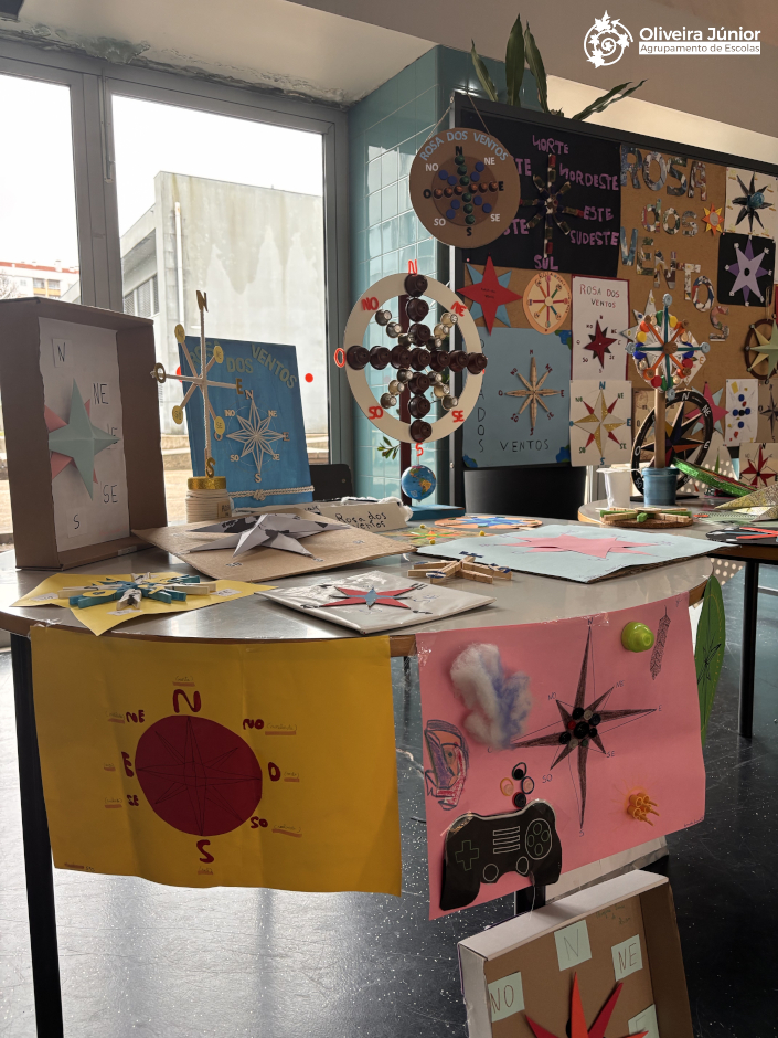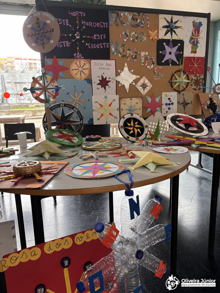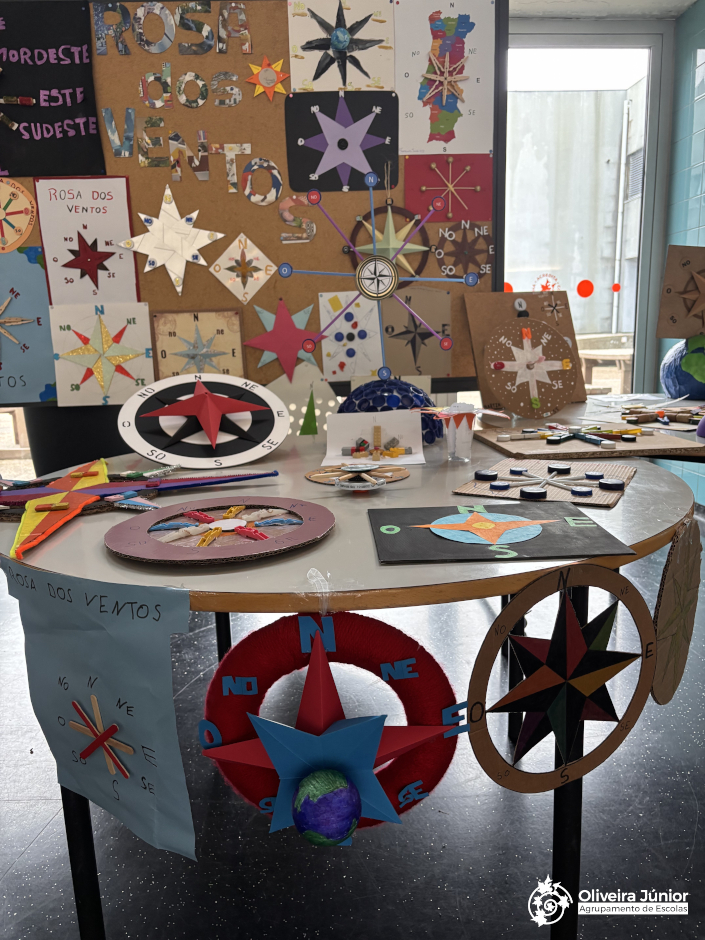 Os alunos do 5º ano da Escola Oliveira Júnior, na disciplina de HGP, construíram criativas rosas-dos-ventos com a colaboração das suas famílias. Estes trabalhos, cheios de dedicação e imaginação, estiveram em exposição no átrio da escola, onde toda a comunidade escolar pôde apreciá-los.